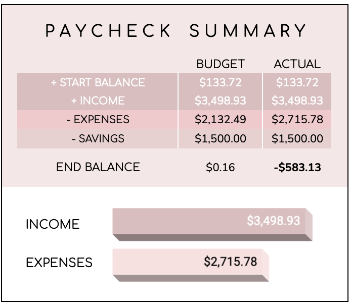 - I get paid once a month, so I create a monthly budget using the Ultimate Budget by Paycheck by JRen Digital on Etsy